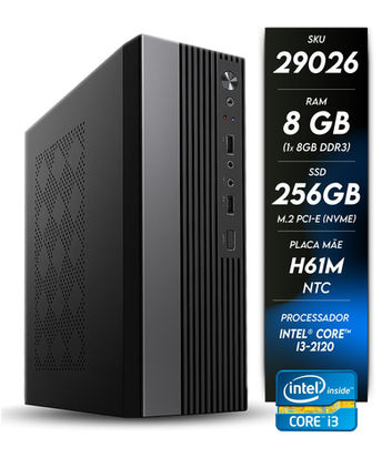O Computador NTC Compact Intel - 1106 TC, vem equipado com processador Intel Core i3 2120 de 2ª Geração com 2 Núcleos e 4 Threads de 3.0Ghz, Placa Mãe NTC H61M, 8GB de Memória RAM DDR3 1600 Mhz (1x8GB), SSD M.2 PCI-E de 256GB (NVMe), Gabinete Slim Micro ATX GM-02CK com apenas 7.7L, Fonte de alimentação Flex de 200W e Sistema Operacional Linux de 64 Bits.