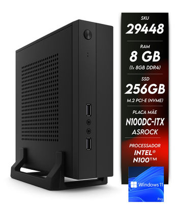 O Minicomputador NTC Mini ITX II Intel - 2101 WIN11PRO, vem equipado com processador Intel Processor N100 com 4 Núcleos e 4 Threads com frequência de até 3.4Ghz no modo Turbo integrado a placa mãe ASRock N100DC-ITX, 4GB de Memória RAM DDR4 3000Mhz (1x8GB), SSD M.2 PCIe de 256GB (NVMe) e Sistema Operacional Windows 11 Pro de 64 Bits, além disso ainda conta com um total de 8 portas USB e 1 Porta Serial (COM).