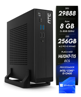 O Minicomputador NTC Mini ITX II Intel 8106 EC WIN11PRO, vem equipado com processador Intel Core i5 12400 de 12ª Geração com 6 Núcleos e 12 Threads de 2.5Ghz a 4.4Ghz no modo Turbo, Placa Mãe Thin-ITX ECS H610H7-TI5, 8GB de Memória RAM DDR4 3200 Mhz Sodimm (1x8GB), SSD M.2 PCI-e de 256GB (NVMe) e Sistema Operacional Windows 11 Pro de 64 Bits.