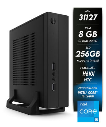 O Minicomputador NTC Mini ITX II Intel - 8113 TC, vem equipado com processador Intel Core i5 12400 de 12ª Geração com 6 Núcleos e 12 Threads de até 4.4Ghz no modo Turbo, Placa Mãe Thin-ITX NTC H610I, 8GB de Memória RAM DDR4 3200 Mhz Sodimm (1x8GB), SSD M.2 PCI-e de 256GB (NVMe), Gabinete Mini ITX GI-228E USB 2.0 com um volume de apenas 2L e Sistema Operacional Linux.